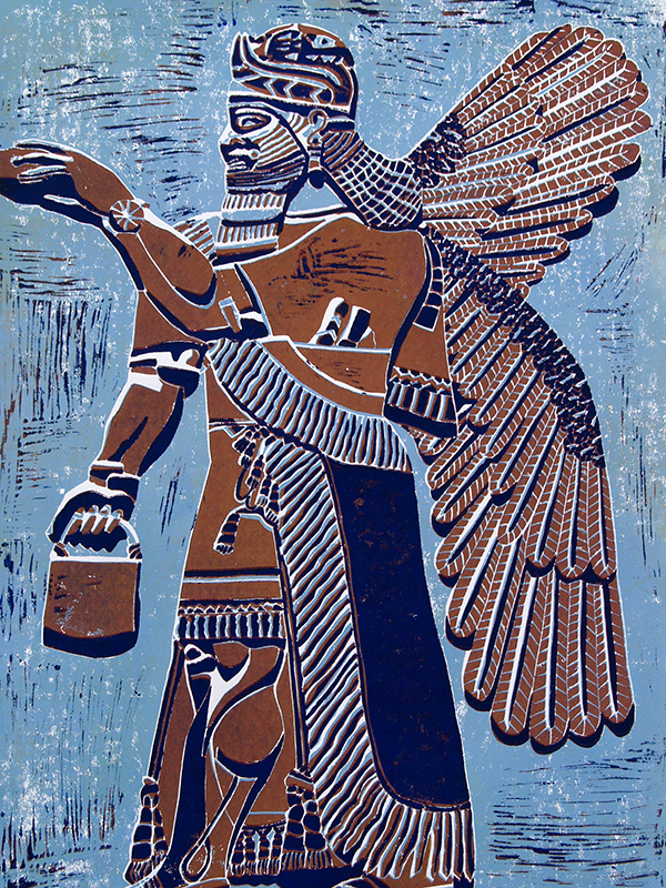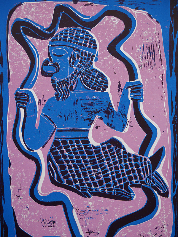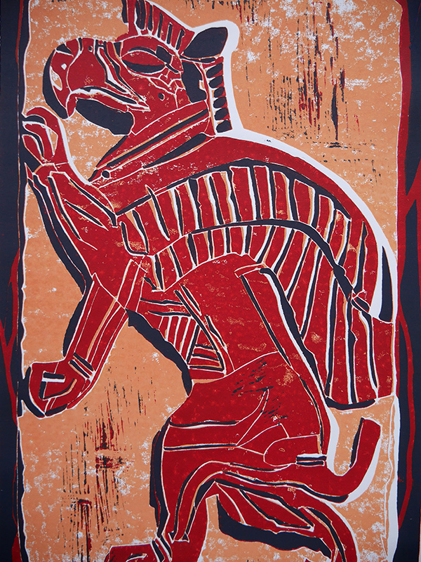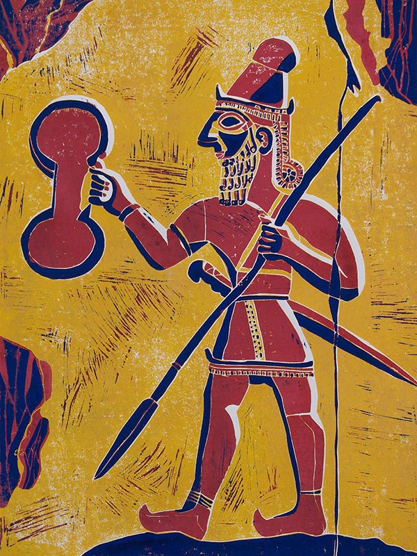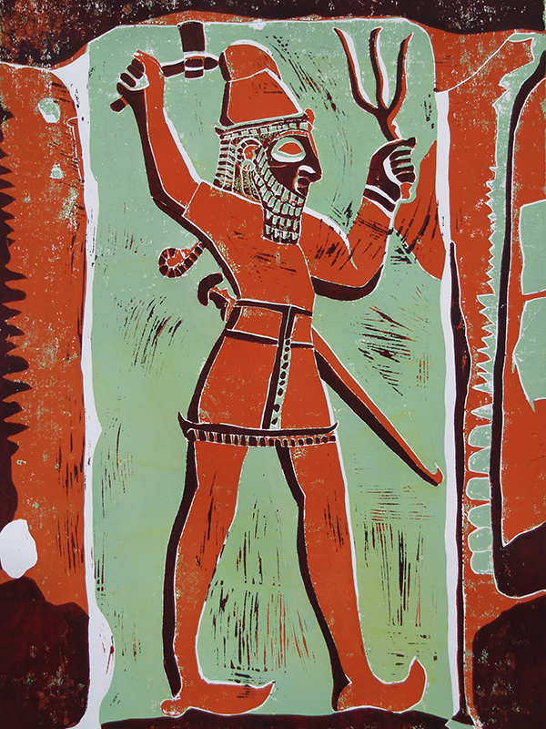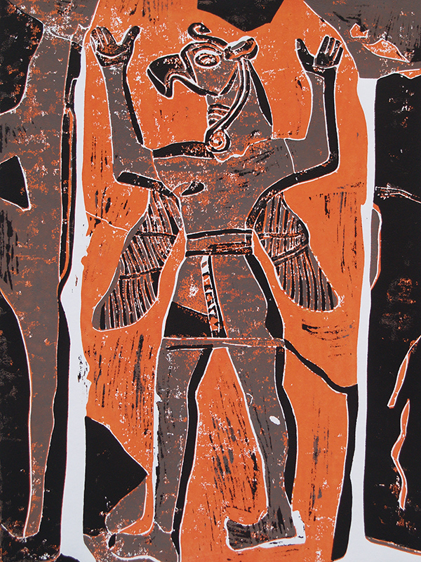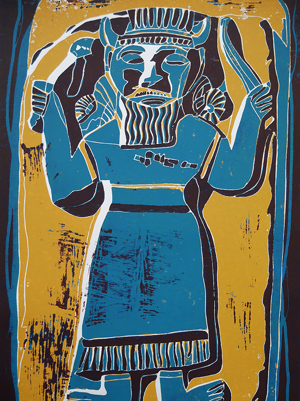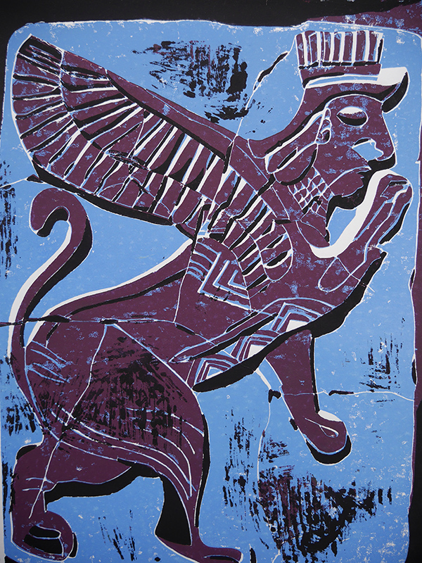 - Die Linolschnitte zeigen hauptsächlich archäologische Motive vergangener Kulturen (Ägypten, vorderer Orient, Mittelamerika).